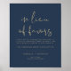 Cette enseigne "En lieu et place des faveurs" présente un design minimaliste moderne et une combinaison de couleurs marine et or. Utilisez ce poster pour votre réception de mariage, douche nuptiale, douche à couple, etc. Associez les articles supplémentaires de la collection CAITLIN pour un look cohésif.