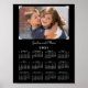 Idéal pour mettre un classeur, cette affiche de 8,5 po x 11 po présente un calendrier 2021 blanc sur un arrière - plan noir avec votre propre photo et nom. Remplacez l'exemple d'image et de texte dans la barre latérale. Votre photographie personnalisée comporte 4 coins blancs *imprimés* comme ceux utilisés dans les albums à gratter, mais tous imprimés à plat sur la surface. Votre texte est dans une police de script blanc sous l'image et au-dessus du calendrier. Fait un grand cadeau pratique. Copyright de la conception du calendrier © Claire E. Skinner. Tous droits réservés. Photographie © Storytree Studios, Stanford, CA