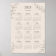 Affiche de calendrier crème beige pastel esthétique minimaliste Art en ligne floral Calendrier annuel 2025