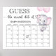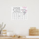 Calendrier de date d'échéance de baby shower d'éléphant rose à l'aquarelle. Poster.