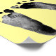 Empreintes de pieds de bébé noires sur fond jaune pour jeu de Baby Shower.