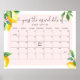 Affiche de calendrier de devinette de date d'échéance de citron rose