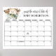 Calendrier de devinette de date d'échéance pour Baby Shower sur le thème des animaux de la forêt. Modifiez les jours selon le mois dont vous avez besoin, allez sur le lien "cliquez pour personnaliser davantage" pour déplacer la date d'échéance à un jour différent (le texte "devinez la date d'arrivée de" n'est pas modifiable mais la couleur peut être changée). COMMENT JOUER : Les invités signent le calendrier avec leurs prédictions pour l'anniversaire du bébé. L'invité qui devine la date de naissance (ou la plus proche) gagne le jeu ! ~ Consultez la collection pour des jeux assortis, une invitation, des pancartes, et plus encore ~