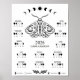 Affiche de calendrier lunaire célestiel de la sorcellerie Moth noir et blanc est parfaite pour les activités de sorcellerie et d'astrologie.