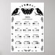 Affiche de calendrier lunaire céleste du corbeau et du papillon de sorcellerie noir et blanc est parfaite pour les activités de sorcellerie et d'astrologie.
