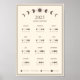 Affiche de calendrier minimaliste couleur beige pastel des cycles lunaires et phases de la lune 2025