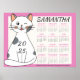 Affiche Calendrier mensuel 2025 Chat blanc mignon rose lud
