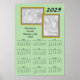 Les photos de vos retrouvailles ornent le haut de ce calendrier poster (deux images encadrées). Calendrier 2025 en bas. Personnalisez le texte pour le nom de l'événement - ajoutez une date ou un lieu aussi ! Sur fond vert.