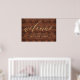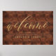 Signe de mariage de bienvenue minimaliste rustique et élégant pour s'afficher comme un magnifique panneau de salutation des invités. Le design du panneau d'accueil comprend "Welcome" dans une typographie de calligraphie de script en faux or moderne. Personnalisez avec le nom de la mariée et du marié et la date du mariage. Le faux arrière - plan en bois rustique ajoute un aspect rustique à la campagne.