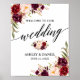 Moderne Élégante calligraphie, Aquarelle Bourgogne Marsala Floral Mariage Accueil Poster