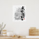 Calligraphie de Takeda Shingen (武 田 玄 信), sous le kanji se trouve la signature samouraïe de Shingen et le kamon du clan Takeda bishi. Dans l'arrière - plan se trouve la statue de Takeda Shingen devant la gare de Kofu au Japon.