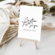 Ce panneau élégant moderne de calligraphie de texte personnalisée est parfait pour un mariage rustique ou une douche de mariée. Le design simple et élégant présente une typographie de script classique et fantaisie en noir et blanc.