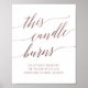 Ce panneau élégant en calligraphie or rose "cette bougie brûle" est parfait pour un mariage simple. Le design rose pâle présente un poster minimaliste orné d'une typographie romantique et fantaisiste en faux feuilletage or rose.