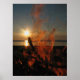 Flames rise from a lakeshore campfire as the sun sets over Lake Superior at the historic Calumet Waterworks in Michigan’s Upper Peninsula. The glowing fire and golden sunset create a powerful contrast of warmth and wilderness along the rugged Great Lakes shoreline.