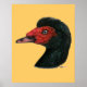 Les canards de Moscovy montrent une bonne dose de peau caronée sur le visage. Les drakes sont beaucoup plus grands que les poules et ont une crête qu'ils élèvent quand ils sont excités.
