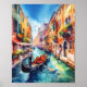 Cette impression d'art présente un portrait aquarelle d'une gondole qui pagaie à travers les canaux à Venise, Italie