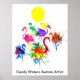 Candy Waters a 20 ans, est autiste et non-verbal, mais est capable de parler à travers son art et d'être entendu partout dans le monde. Candy est une artiste publiée avec son livre d'art intitulé "Don non parlé ~ Candy Waters Autism Artist" disponible sur Amazon. Irvine Magazine, de l'Université de Californie, utilise la peinture "Mr Sun" de Candy pour la couverture de son numéro d'été 2013 qui met en lumière les efforts de l'UCI pour aider les personnes atteintes d'autisme. Les peintures de Candy's Sun ont été présentées sur CBS Sunday Morning News Show à de nombreuses reprises. De plus, d'innombrables reportages télévisés et reportages ont été réalisés sur Candy's Art. Candy peint chaque peinture sur sa page facebook avec un peu d'aide de ses amis (Comme les Beatles Said) Nous utilisons de nombreuses techniques de peinture différentes avec Candy (art original, collaboration...etc) Notre famille est honorée et fière d'être ses humbles aides. Allez Candy ! ! Foi, Amour & Espoir ! !