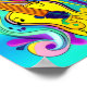 Une toile brillante d'aqua, de blues et de rose a été créée en utilisant la guitare comme point de mire. La combinaison des couleurs vives et de la guitare donne un sentiment d'aventure.