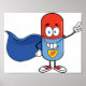 Une capsule de pilule habillée comme un personnage de dessin animé. Ce design semble vraiment efficace sur cette affiche