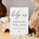 Affiche du mariage de calligraphie noir et blanc "Aidez-nous à capturer l'amour" avec le hashtag. Veuillez me contacter si vous avez besoin d'autres articles.