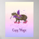 Un design mignon et drôle mettant en vedette une adorable fée capybara tenant une baguette magique dans sa bouche, entourée d'étoiles scintillantes. Elle porte des chaussures roses à la mode. Cette illustration ludique et rêveuse est parfaite pour les filles qui aiment les animaux magiques et les ambiances de fée.