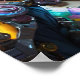 Un personnage futuriste de style anime aux couleurs vibrantes est représenté avec des équipements de technologie de pointe et des casques. L'arrière - plan est orné de cerisiers en fleurs et de lanternes doucement brillantes.