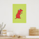 Impression d'affiche de dinosaures mignonnes avec une illustration colorée d'un dinosaure T-Rex caricaturé rouge avec une brasse ardente sur arrière - plan vert. Ce joli imprimé aux couleurs vives convient aussi bien aux enfants qu'aux adultes. :)