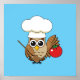 Illustration d'un chouette chef tenant sa cuillère en bois et prêt à cuisiner une sauce tomate rouge. L'un des meilleurs hobbies et occupations de ce monde est la cuisine où les gens peuvent explorer et expérimenter leur passion pour la nourriture. Ce dessin animé kawaii est une idée cadeau pour les gens qui aiment cuisiner, les amateurs de nourriture, les végétaliens et les amateurs de nourriture saine.