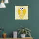 Affiche Caricature de la chouette. Jaune.