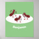 Affiche Caricature de patinage sur glace de Happy red four