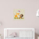 Une affiche avec une jolie illustration montrant un cerf de bébé et un petit écureuil tenant une glande et un papillon volant au-dessus de leur tête. Ces adorables créatures boisées se tiennent debout sur une herbe avec quelques champignons fantaisistes à leurs pieds. L'Arrière - plan a un look de papier kraft brun.