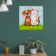 Affiche Caricature mignonne Chien et Chat assis ensemble