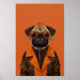 Cette oeuvre originale et élégante présente un charmant carlin habillé d'une veste en cuir d'inspiration steampunk, agrémenté de motifs d'Halloween en orange vif et noir. L'expression ludique du carlin est rehaussée par ses lunettes rétro et l'adorable araignée assise sur sa tête, lui donnant un mélange de mignonette et de poinçon. L'arrière - plan orange vif ajoute une pop audacieuse, ce qui en fait un morceau parfait pour les amateurs de chiens, de mode steampunk ou de décoration à thème Halloween unique. Cette impression apportera du caractère et un brin d'humour à tout espace.
