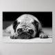 Photographie en noir et blanc d'un très adorable petit carlin aux yeux bruns âmes.
