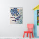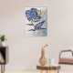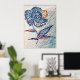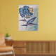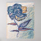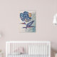 Aquarelle Artistique Carreaux Bleus Texturés Poster de peinture de fleurs.