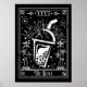 Grunge carte tarot design pour les amateurs de boba tea! Le Boba. Illustration blanche et noire avec un thé au boba à emporter avec squelette dansant, étoiles et éclat.