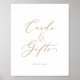 Ce délicat panneau de cartes et cadeaux en calligraphie dorée est parfait pour un mariage moderne ou une fête de mariage. Le design romantique minimaliste présente une typographie élégante et charmante de couleur jaune doré champagne sur fond blanc avec un aspect propre et simple. La ligne de texte au bas du panneau peut être personnalisée avec la date, les noms de la mariée et du marié, ou un court message comme "Merci". Ce panneau peut être utilisé pour un mariage ou tout événement ou fête.