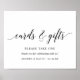 Cette affiche de faveur noire et blanche est parfaite pour tout type de mariage, d'élégant à simple, rustique à bohème. Ce panneau invite les invités à prendre une carte ou un cadeau avec un script de calligraphie noire et trois lignes de texte personnalisé.