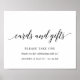 Cette affiche de faveur noire et blanche est parfaite pour tout type de mariage, de l'élégant au simple, du rustique au bohème. Ce panneau invite les invités à prendre une carte ou un cadeau avec un script de calligraphie noire et trois lignes de texte personnalisé.