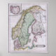 Affiche Carte de Scandinavie, Norvège, Suède, Finlande, et