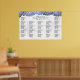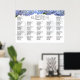 Tableau alphabétique des sièges pour un hydrangea / mariage bleu. Deux grandes images d'étoiles de mer sur l'arrière - plan représentent le couple avec une jolie bordure florale bleu clair en haut. Nom en grandes lettres avec les noms de la mariée et du marié et date du mariage en petits caractères. Indiquez le nom des invités dans chaque section. Voir aussi cette affiche sans l'étoile de mer ci-dessous.
