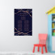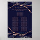 Ajoutez votre touche spéciale à cet élégant design aux tons classiques d'agate bleu marine avec des veines en feuille d'or rose métallique. Ce tableau de sièges présente les noms de la mariée et du marié ainsi que les mots "Mangez, Buvez et Soyez Joyeux" et "S'il vous plaît, trouvez votre siège". Les modèles peuvent accueillir jusqu'à sept tables et jusqu'à huit noms par table.