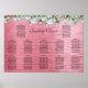 Un magnifique tableau de sièges mariage rose avec un motif métallique semblable à la tôle, avec une touche nuptiale très traditionnelle de roses blanches le long du bord supérieur.
