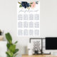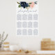 Elégante carte marine et mariage rose pâle. Le bleu marine et les fleurs rousses et la verdure aquarelée ajoutent une touche moderne à ce tableau de sièges. Ce tableau de sièges offre une superficie maximale de 120 places !