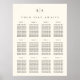 Partagez vos détails de siège de réception de mariage dans un style élégant avec ce plan de siège mariage monogramme en ivoire chaud avec vos initiales en lettres noires serif traditionnelles, biscuits par une fine ligne verticale. Customisez l'en-tête (indiqué avec "votre siège attend") et jusqu'à 12 tables.