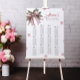 Guidez les clients avec cet élégant tableau de sièges de flocon rose, parfait pour une douche nuptiale en hiver. Avec un thème festif de Noël, il ajoute chaleur et style à votre célébration tout en aidant les invités à trouver leur place. Les tons rose et flocon de neige doux en font un lieu idéal pour un événement confortable sur le thème des vacances.