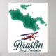 Praslin Seychelles belle carte de l'île décorée d'un vieux bi-plan rouge classique.