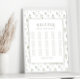 Transformez votre décor mariage avec le charme intemporel de notre élégant poster classique romantique. Avec ses feuilles d'eucalyptus vert poussiéreux et ses fleurs blanches, cette affiche ajoute une touche de sophistication à votre mariage de jardin de printemps. Explorez ce détail exquis pour un arrangement de sièges mémorable et organisé.