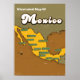 Carte illustrée du Mexique et des régions environnantes dans un style rétro ou vintage usé.