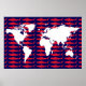 Carte graphique cool des continents avec un arrière - plan motif de requins rouges